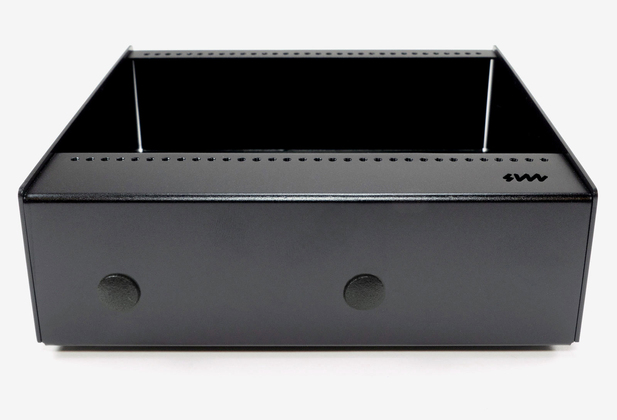 The Pod34X is 34HP wide and has extra room to fit even the deepest modules (2.16" / 55mm of available module depth). No power supply is included, you must supply your means of powering modules with a DIY power supply or a front-facing module such as the Row Power. Two holes on the rear face are plugged with removable plastic plugs, and can be used for DIY applications.