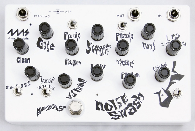 • LFO: A rhythmic wave swashes uncertain characteristics of the noise in and out. Speed knobs, flashing LED, on/off switch
