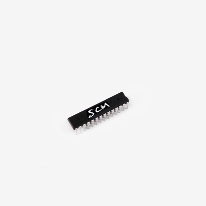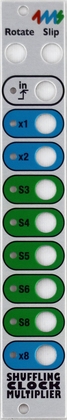 DIY replacement faceplate for the Shuffling Clock Multiplier. Black background with white artwork.
