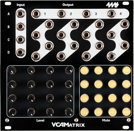 DIY replacement faceplate for the VCA Matrix. Black background with white artwork.