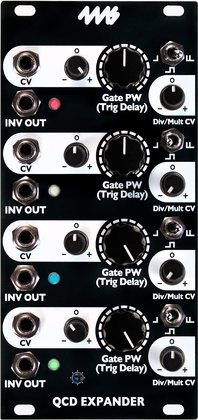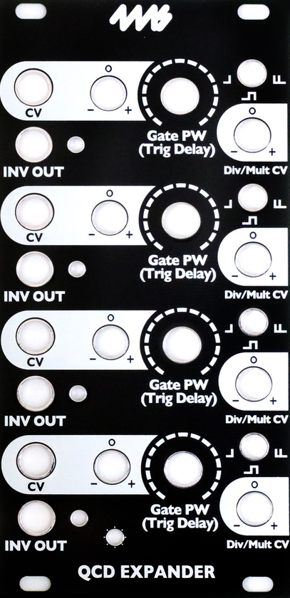 DIY replacement faceplate for the QCD Expander. Black background with white artwork.