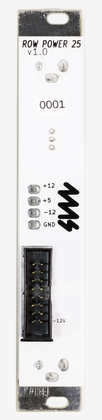 The Row Power 25 is a clean, regulated, and protected power supply module for Eurorack systems. It requires a barrel-style power brick (15V - 20V DC; we recommend our 90W power brick) and supplies power to modules via flying bus cables, direct connection, and/or bus boards.